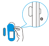 Du kan plassere dør-/vindussensoren i dør- eller vinduskarmen og feste den med dobbeltsidig tape.