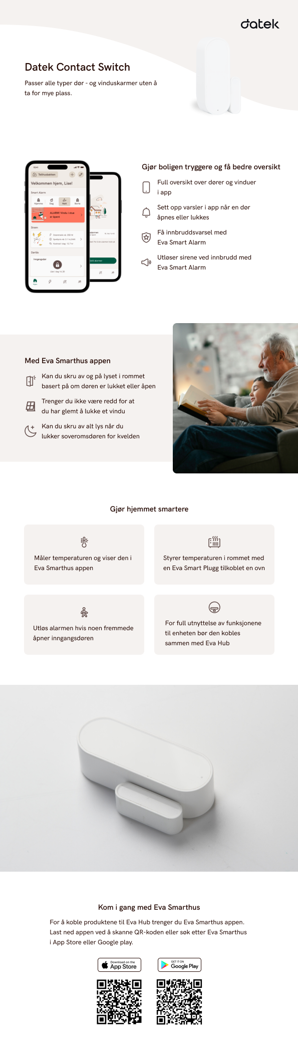 Koble Datek Contact Switch til Eva Hub/Gateway